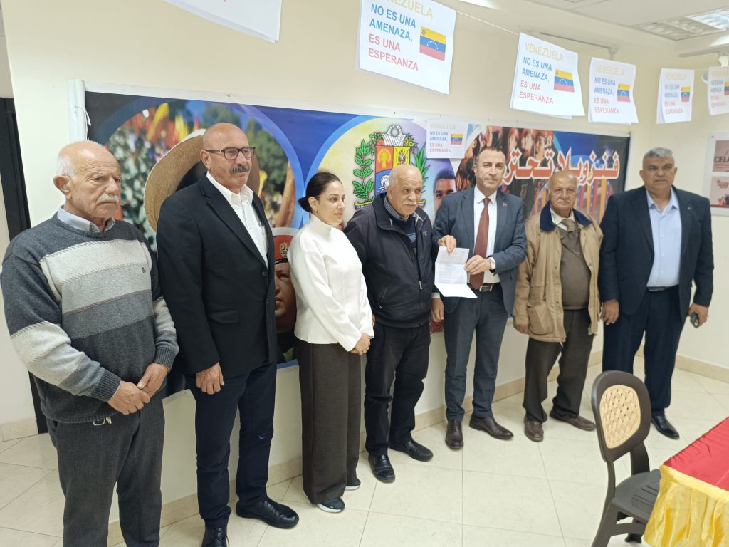 Palestina, 8 de diciembre de 2025.- El embajador de la República Bolivariana de Venezuela en el Estado de Palestina, Maher Taha, recibió en la Misión Diplomática a representantes de la Comisión de Acción Nacional y Comunitaria en la ciudad de Jerusalén para celebrar el Día de la Lealtad al Comandante Eterno Hugo Chávez, en honor a su legado.