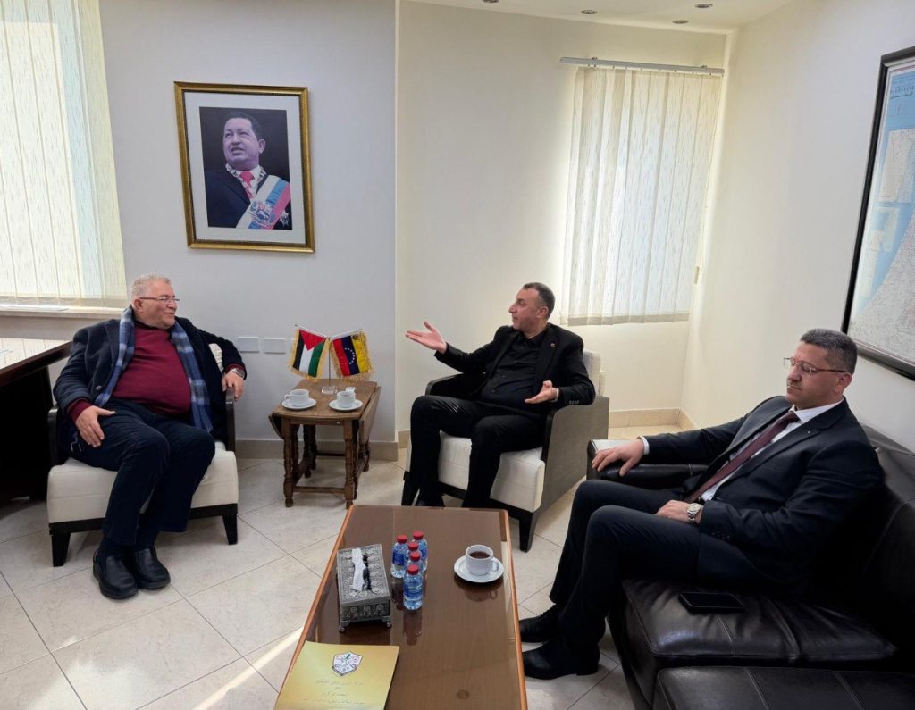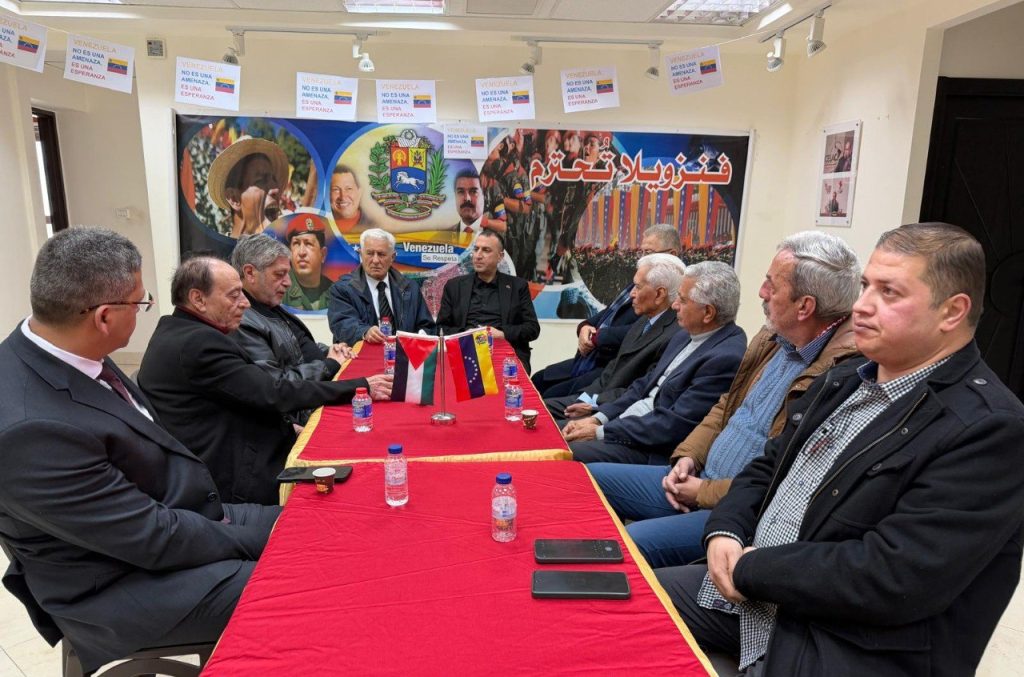 Palestina, enero de 2026.- El embajador de la República Bolivariana de Venezuela en el Estado de Palestina, Maher Taha, se reunió el 5 de enero con un grupo de intelectuales y juristas, quienes expresaron su condena a las acciones tomadas contra el presidente Nicolás Maduro y la Primera Dama Cilia Flores, y entregaron una carta de solidaridad.